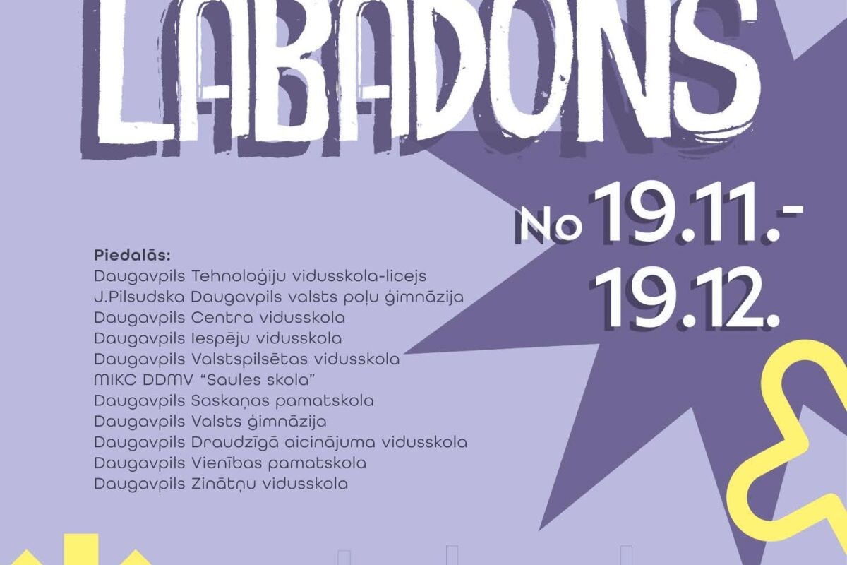 Daugavpils pilsētas skolu pašpārvaldes uzsākušas labo darbu izaicinājumu – maratonu LABADONS. LABADONA uzdevums ir veikt kādu labu, pozitīvu darbu, aktivitāti savas skolas, apkārtējās kopienas labā ar mērķi veicināt pilsētas skolu pašpārvalžu un pilsētas iedzīvotāju savstarpējo mijiedarbību, iesaisti pilsoniskās līdzdalības un atbildības veicināšanā. LABADONS norisināsies mēnesi – no šī gada 19.novembra līdz 19.decembrim –, kura laikā…