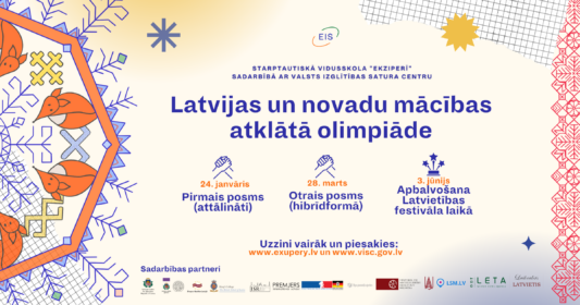 Starptautiskā vidusskola “Ekziperī” līdz 2023. gada 20. janvārim aicina pieteikties dalībai pirmajā Latvijas un novadu mācības atklātajā olimpiādē. Olimpiādi organizē starptautiskā vidusskola “Ekziperī” sadarbībā ar Valsts Izglītības satura centru, Latviešu valodas aģentūru un Latvijas Nacionālo Vēstures muzeju ar mērķi stiprināt latviešu valodas un kultūras pratību Latvijas skolu un diasporas jauniešu vidū. Olimpiādē aicināti piedalīties Latvijas starptautisko un publisko skolu skolēni, latviešu diasporas jaunieši un ārzemju studenti, kuri mācās latviešu valodu un Latvijas kultūras kursus.