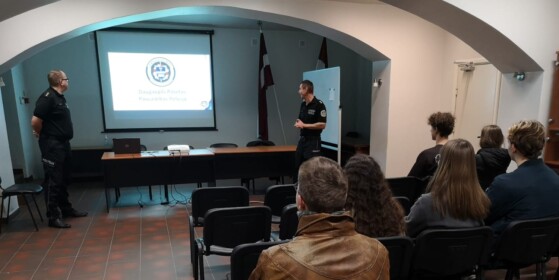 Apmeklējot Daugavpils pašvaldības policiju, jaunieši iepazinās ar pašvaldības policijas funkciju, jomām, kurās strādā, tostarp arī preventīvi. Jauniešiem uzdeva jautājumus, uz kuriem policisti labprāt atbildēja, kā arī pastāstīja, kā var sazināties un atrast atbildes arī sociālajos tīklos. Daugavpils ir diezgan droša pilsēta, jo tajā ir uzstādītas vairāki desmiti novērošanas kameru, kurās fiksēto informāciju tiešsaistes režīmā skata pašvaldības policijas darbinieki. Jauniešiem bija iespēja iepazīties ar šo sarežģīto un atbildīgo darbu, kā arī kāda veida pārkāpumi tā tiek atklāti. Interesanta bija statistikas un juridiskā informācija, kas noteikti noderēs nākotnē un pārrunās ar vienaudžiem. Nodarbības galvenā atziņa – policija ir garants un atbalsts drošībai, reizēm tas ir neredzamais mūsu ikdienas gaitu sargs.