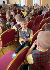 Pasākuma noslēgumā skolēni tika cienāti ar medu, kas bija pasniegts gan ar rupjmaizi, gan ar baltmaizi. Skolēni gardu muti notiesāja veselīgo našķi un izteica lielu paldies par gardo medu un interesanto nodarbību, kurā tika iegūtas jaunas un vērtīgas zināšanas. Kas to lai zina, varbūt kāds no mazajiem pirmklasniekiem dienās arī kļūs par biškopi?!