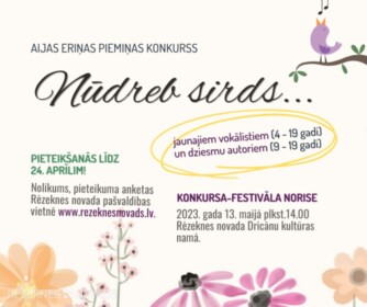 Plašāka informācija par konkursu un tā norisi: https://rezeknesnovads.lv/izsludinata-pieteiksanas-aijas-erinas-pieminas-konkursam-nudreb-sirds-jaunajiem-vokalistiem-un-dziesmu-autoriem/