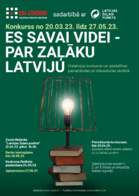 Jauniešu izglītības programma “Esi Līderis!” organizē Vislatvijas jauniešu konkursu “ES SAVAI VIDEI – PAR ZAĻĀKU LATVIJU!”, kas ir veidots sadarbība ar AS «Latvijas Zaļais punkts» un ir konkursa ģenerālsponsors.