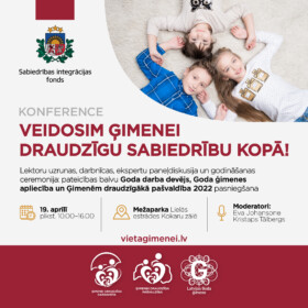 Ņemot vērā dinamisko darba ritmu, iespējams, mūsu ielūgums ir palicis nepamanīts, tādēļ vēlamies atkārtoti aicināt uz Sabiedrības integrācijas fonda organizēto konferenci “Veidosim ģimenei draudzīgu sabiedrību kopā!”, kas notiks 19. aprīlī.