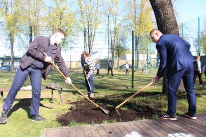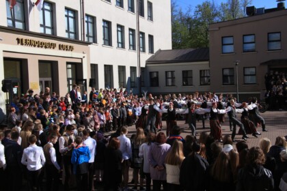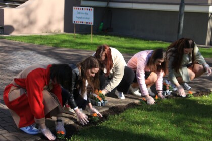 Akcijas “Ziedi mūsu skola, Daugavpils un Latvija” ietvaros skolēni stādīja puķes, rotāja skolas pagalmu, apsveica Latviju Neatkarības atjaunošanas dienā.
