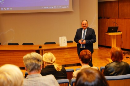 Tikšanās noslēgumā pateicības vārdus pedagogiem izteica arī Daugavpils valstspilsētas pašvaldības domes priekšsēdētāja 1. vietnieks Aleksejs Vasiļjevs, kurš, uzrunājot klātesošos, pateicās visiem, kas piedalījās šajā projektā: gan tā organizatoriem, gan Daugavpils pilsētas Izglītības pārvaldes darbiniekiem, gan, protams, izglītības iestādēm un pedagogiem, kas iet kopsolī ar laiku un veic patiesi apjomīgu darbu mācību procesa uzlabošanai.