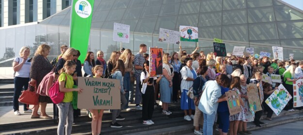 Trešdien, 13. septembrī, Daugavpils Saskaņas pamatskolas audzēkņi un pedagogi no Strēlnieku laukuma, kopā ar citiem Ekoskolu audzēkņiem un pedagogiem, devās “Pozitīvā gājienā” uz Vides aizsardzības un reģionālās attīstības ministriju (VARAM), lai kopā ar ministru Māri Sprindžuku dotos tālāk līdz Latvijas Nacionālajai bibliotēkai, kur Ziedoņa zālē notika ikgadējā Ekoskolu apbalvojumu pasniegšanas ceremonija.