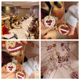 Nodarbības noslēgumā skolēni darbojās radošā darbnīcā un izgatavoja skaistas koka medaļas, uz kurām ar akrila krāsām attēloja kādu simbolu, kas saistās ar Latviju.