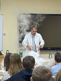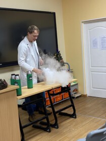 Skolēniem tika dota iespēja ieskatīties brīnumu aizkulisēs, pataustīt mākslīgi radītu sniegu, pavērot “miglas” veidošanas procesu, lai saprastu, kā rodas īstā māksla, izmantojot ķīmijas zināšanas, un iedziļināties arī grimētāja profesijas niansēs.