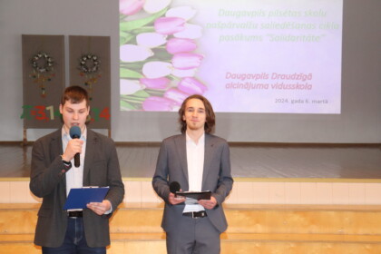6.martā Daugavpils Draudzīgā aicinājuma vidusskolā notika “Skolu pašpārvalžu saliedēšanas pasākums “Solidaritāte. Ar sauli un mīlestību sirdīs”. Dalībnieki apguva zināšanas par vispasaules sieviešu solidaritātes dienu, vienaudžu atbalsta formām, iniciatīvas attīstīšanu.