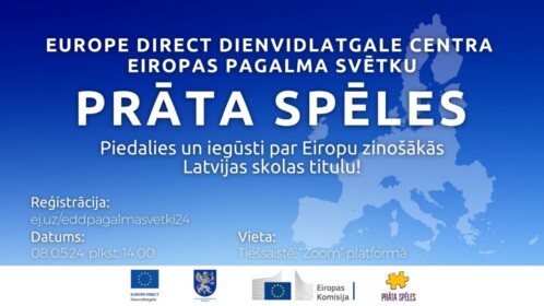 Eiropas nedēļas laikā EUROPE DIRECT Dienvidlatgale centrs sadarbībā ar Eiropas Parlamenta biroju Latvijā 8.maijā Eiropas svētku ietvaros aicina ikvienu Latvijas mācību iestādi plkst.14.00 pievienoties izzinošai spēlei, lai pārbaudītu savas zināšanas par Eiropas Savienību un Eiropas Parlamenta vēlēšanām.