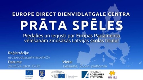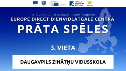 Tuvojoties 8. jūnijam, kad visā Latvijā notiks Eiropas Parlamenta vēlēšanas, Europe Direct Dienvidlatgale centrs sadarbībā ar Eiropas Parlamenta biroju Latvijā un Konrāda Adenauera fondu Baltijas valstīs, š.g. 29. maijā tiešsaistē rīkoja “Prāta spēles”, lai pārbaudītu Latvijas skolu jauniešu zināšanas par Eiropas Parlamenta vēlēšanām.
