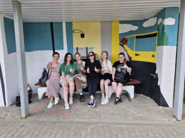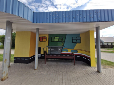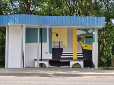 Šī gada maijā mācību prakses laikā “Saules skolas” Grafikas dizaina programmas audzēknes Anna Jureviča, Angelīna Minkeviča, Ksenija Lasska, Aleksandra Jakovļeva, Alīna Rumjanceva un Mišela Elizabete Lava skolotāju Inetas Pudžas un Anatolija Šandurova vadībā ķērās pie projekta realizācijas. Nebija viegli strādāt āra apstākļos, tomēr triju dienu laikā darbs tika paveikts un nu Vecstropos krāsainās autobusu pieturas priecē gan apkaimes iedzīvotājus, gan garāmbraucējus!