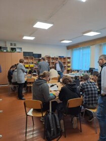 Erasmus+ projekta 2022-1-PT01-KA120-VET-000109329 ietvaros divi skolotāji no Portugāles Agrupamento de Escolas da Maia piedalījās darba ēnošanas mobilitātē Daugavpils Iespēju vidusskolā no 29.oktobra līdz 1. novembrim. Ārzemju viesiem bija iespēja vērot mācību stundas: fiziku, uzņēmējdarbības pamatus, robotiku 12.klasē, bioloģiju 8., 11. un 12.klasē, matemātiku 8. un 11.klasē, ķīmiju 10.klasē, datoriku 7.klasē. Mācību priekšmetu skolotāji demonstrēja savu meistarību darbā ar skolēniem. Notika interesantas skolēnu grupu praktiskās aktivitātes, kur skolēni izvirzīja hipotēzes, eksperimentēja, dokumentēja pētījumu gaitu, secināja, vai hipotēzes apstiprinājās un kāpēc. Tika vērotas dažādas uzdevumu risināšanas metodes, prasmīgi to darot uz elektroniskās tāfeles klases priekšā. Veiksmīgi rādīja viedo mācību grāmatu izmantošanas iespējas. Darba vērotāji pamanīja, ka kabineti ir labi tehniski aprīkoti un jaunās tehnoloģijas ir integrējušās tradicionālajā metodikā. Stundu laikā skolotāji daudzpusīgi pasniedza mācību vielu, izmantojot kompetencēs balstītas mācību metodes, piemēram, problēmu risināšana, pašvadīta mācīšanās, sadarbība, digitālās prasmes.