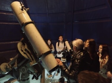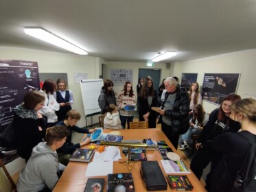 Pēc sarunas skolu pašpārvalžu pārstāvji devās uz DU observatoriju. Tur jauniešus gaidīja DU observatorijas vadītājs Antonijs Salītis, kurš ar lielu aizrautību sniedza nelielu ieskatu astronomijā un tajā, kā strādāt ar zvaigžņu kartēm, kā arī pašu teleskopu.