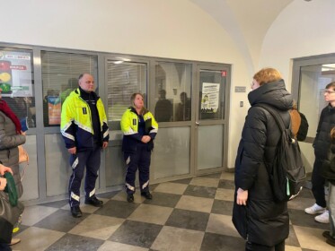 Šī gada 20.februārī Daugavpils skolu pašpārvalžu līderi devās uz Valsts policijas Latgales reğiona pārvaldi, kur notika tikšanās ar Valsts policijas Latgales reğiona pārvaldes Dienvidlatgales iecirkņa Prevencijas grupas inspektoriem Jāni Zaharu un Marinu Tkačenko, kuri sniedza nelielu ieskatu Valsts policijas darbā un labprāt atbildēja uz jauniešu jautājumiem.
