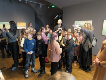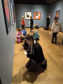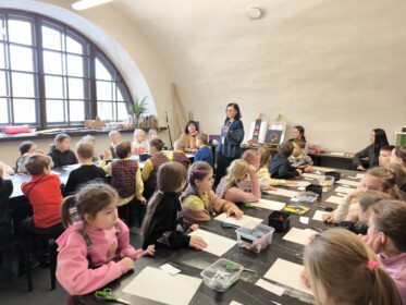 Gida pavadībā skolēni nokļuva mākslas pasaulē. Interesantā stāstījuma laikā gids skolēnus iepazīstināja ar vizuālās mākslas valodu, kā arī piedāvāja dažādus uzdevumus un uzklausīja viņu pieredzi. Skolēniem vajadzēja atrast gleznās tēlus un uzrakstīt visvairāk iepatikušās gleznas autoru un nosaukumu.