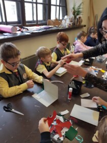 Iedvesmojoties no gleznām, kuras bija apskatītas, praktiskajā daļā skolēni kopā ar muzejpedagogu izveidoja savu radošo darbu.