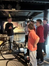 Motormuzejā skolēni gida pavadībā iepazinās ar automobiļu izstādi un piedalījās muzejpedagoģiskajā nodarbībā “Auto dizains – kur māksla sastop fiziku”, kurā uzzināja, kā dizains un inženierija darbojas roku rokā.