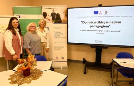 2025. gada 29. septembrī Daugavpils pilsētas Izglītības pārvaldē norisinājās otrā tikšanās ar jaunajiem pedagogiem domnīcu ciklā, kas tiek īstenots ESF Plus projekta Nr. 4.2.2.3/1/24/I/001 “Pedagogu profesionālā atbalsta sistēmas izveide” ietvaros. Šī nodarbība bija veltīta divām būtiskām tēmām – e-klases praktiskai lietošanai skolā un pirmsskolā un efektīvai komunikācijai ar vecākiem. Pasākuma mērķis bija sniegt jaunajiem pedagogiem praktiskas iemaņas, kas palīdzēs ikdienas darbā, veicinās savstarpējo sadarbību un stiprinās profesionālo pārliecību.