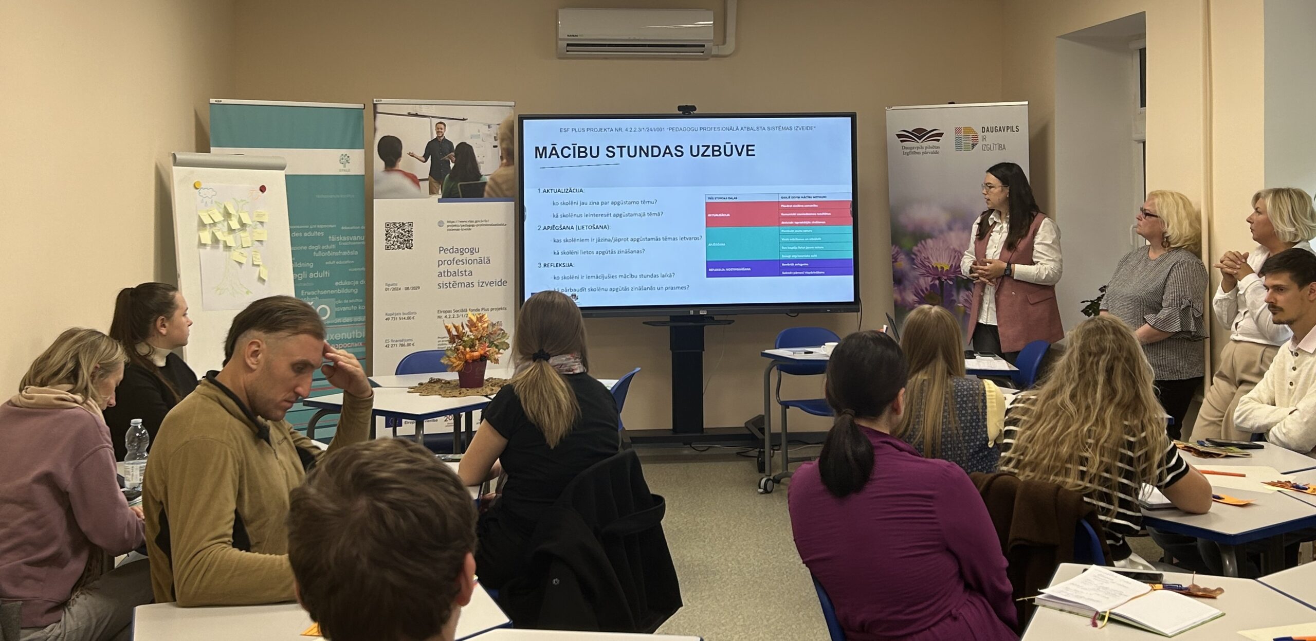 Nodarbības laikā piedalījās 15 jaunie pedagogi no dažādām Daugavpils pilsētas izglītības iestādēm, apliecinot interesi un motivāciju pilnveidot savas profesionālās prasmes. Nodarbību vadīja ESF Plus projekta “Pedagogu profesionālā atbalsta sistēmas izveide” metodiķes – Irīna Arhipova, Ilze Zīle un Irina Pipčenko, kuras radīja atbalstošu vidi diskusijām, praktiskām aktivitātēm un pieredzes apmaiņai.