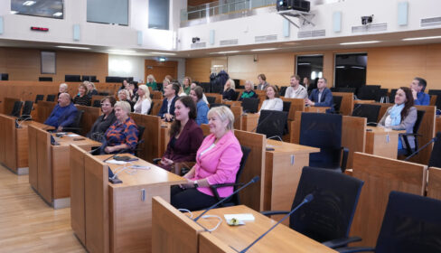 Rīgas domes sēžu zālē notika tikšanās ar Rīgas domes Izglītības, kultūras un sporta komitejas priekšsēdētāju Laimu Geikinu un Izglītības, kultūras un sporta departamenta pārstāvjiem. Tikšanās laikā tika iepazīta Rīgas pašvaldības izglītības sistēmas īstenošanas pārvaldība, kā arī gūta informācija par izglītības pieejamību un nodrošinājumu un Rīgas izglītības ekosistēmas attīstības stratēģiju 2024.–2028. gadam.
