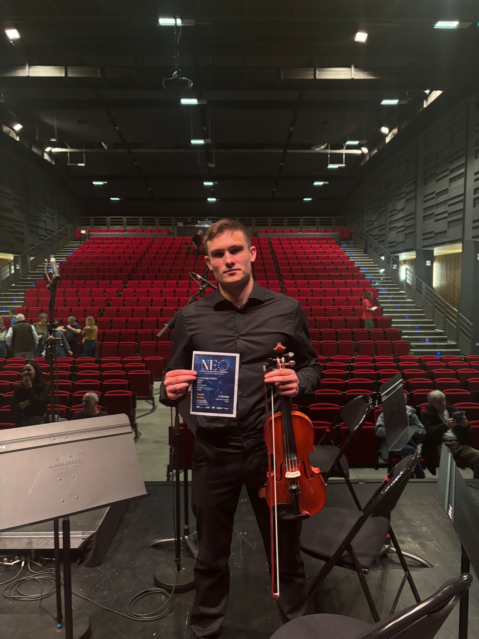 Staņislava Broka Daugavpils Mūzikas vidusskolas 3 jaunieši un 2 pedagogi no š.g. 27.oktobra līdz 2.novembrim devās uz Vjennu, Francijā, lai piedalītos unikālā projektā – Eiropas jauniešu orķestrī (NEO-NEW EUROPEAN ORCHESTRA). Ideja dzimusi pirms dažiem gadiem – sabraukt kopā uz mēģinājumiem uz nedēļu Eiropas talantīgākajiem jaunajiem mūziķiem, kas mācās profesionālajās mūzikas skolās, un pēc nedēļas kopīga darba nospēlēt klasiskās simfoniskās mūzikas koncertus. Analogs projekts jau ir noticis, tādēļ šī gada pasākums jau bija ar zināmu pieredzi un ideju. Protams, vispirms notika dalībnieku atlase, kur bija jāsūta video ar sava mūzikas instrumenta izpildījumu. Lepojamies, ka visus, Staņislava Broka Daugavpils Mūzikas vidusskolas pieteiktos jauniešus, atlasīja! Pēc tam tika izsūtītas notis un notika patstāvīgs attālināts darbs ar franču un Eiropas klasiķu repertuāru. Tā radās orķestris, kurš sastāvēja no Eiropas deviņu valstu jauniešiem un pedagogiem: 63 izglītojamie, 20 skolotāji, 12 pavadošie skolotāji.