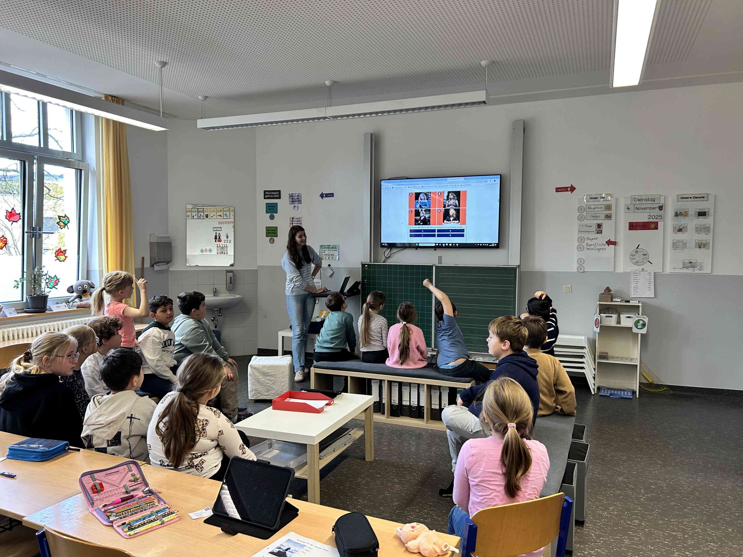 Mūsu mācību vizīte notika Talschule Hamm skolā, kurā mācās apmēram 250 skolēni vecumā no 6 līdz 10 gadiem. Skolā strādā 25 skolotāji, kā arī ir pedagoga palīgi. Bija ļoti vērtīgi vērot priekšmeta skolotāju un pedagoga palīga darbu stundas laikā.