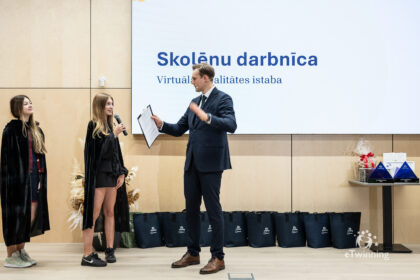 Izvirzītās skolu komandas savus eTwinning sadarbības projektus prezentēja 31.oktobrī eTwinning konferencē Rīgā. Tikmēr skolotāji konferences laikā piedalījās darbnīcās, kas veicina radošumu un mākslīgā intelekta izmantošanu, iegūstot jaunas idejas un praktiskus rīkus inovāciju ieviešanai mācību procesā, skolēni darbojās interaktīvi ar virtuālās realitātes (VR) brillēm.