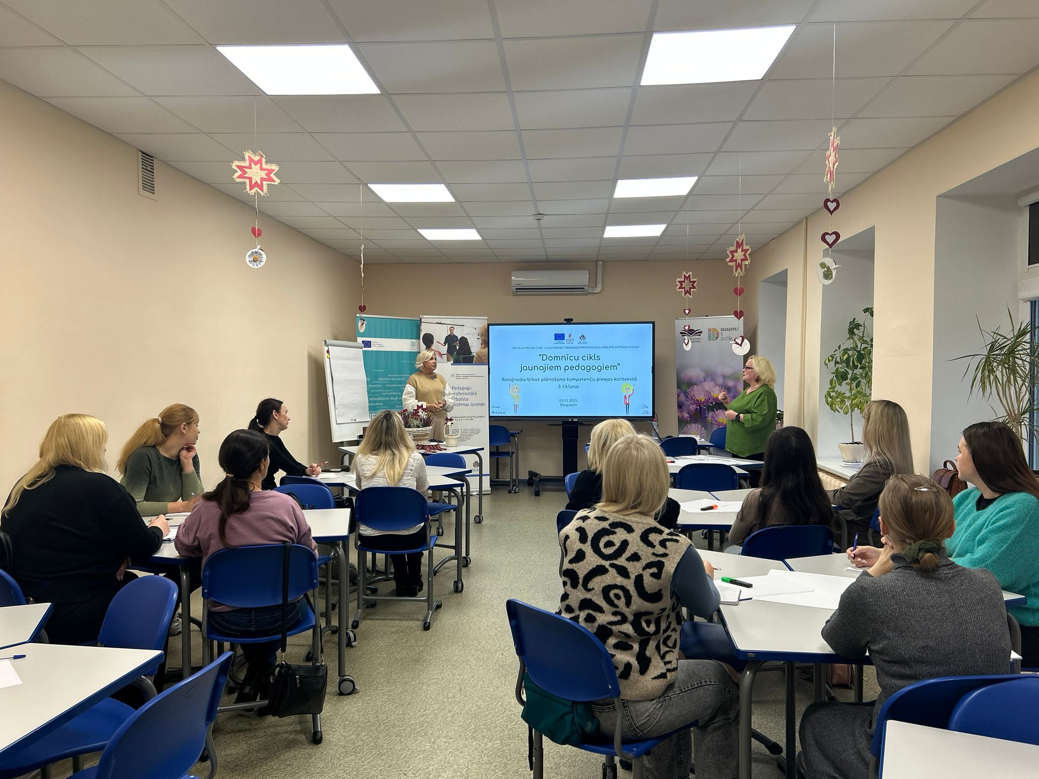 2025.gada 27.oktobrī un 3.novembrī Daugavpils pilsētas Izglītības pārvaldē norisinājās kartējās tikšanās domnīcu ciklā “Jauno pedagogu ceļvedis kompetenču pieejas īstenošanā skolā”, kas tiek īstenots ESF Plus projekta Nr.4.2.2.3/1/24/I/001 “Pedagogu profesionālā atbalsta sistēmas izveide” ietvaros. Šoreiz pasākumi bija veltīti mācību procesa strukturēšanai un jēgpilnai organizēšanai dažādos izglītības posmos – skolā un pirmsskolā.