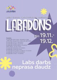 LABADONS norisināsies mēnesi – no šī gada 19.novembra līdz 19.decembrim –, kura laikā skolu pašpārvaldes cita citu izaicinās ar labiem darbiem. Labie darbi būs jāveic 2 dienu laikā un jāiemūžina nelielā video.