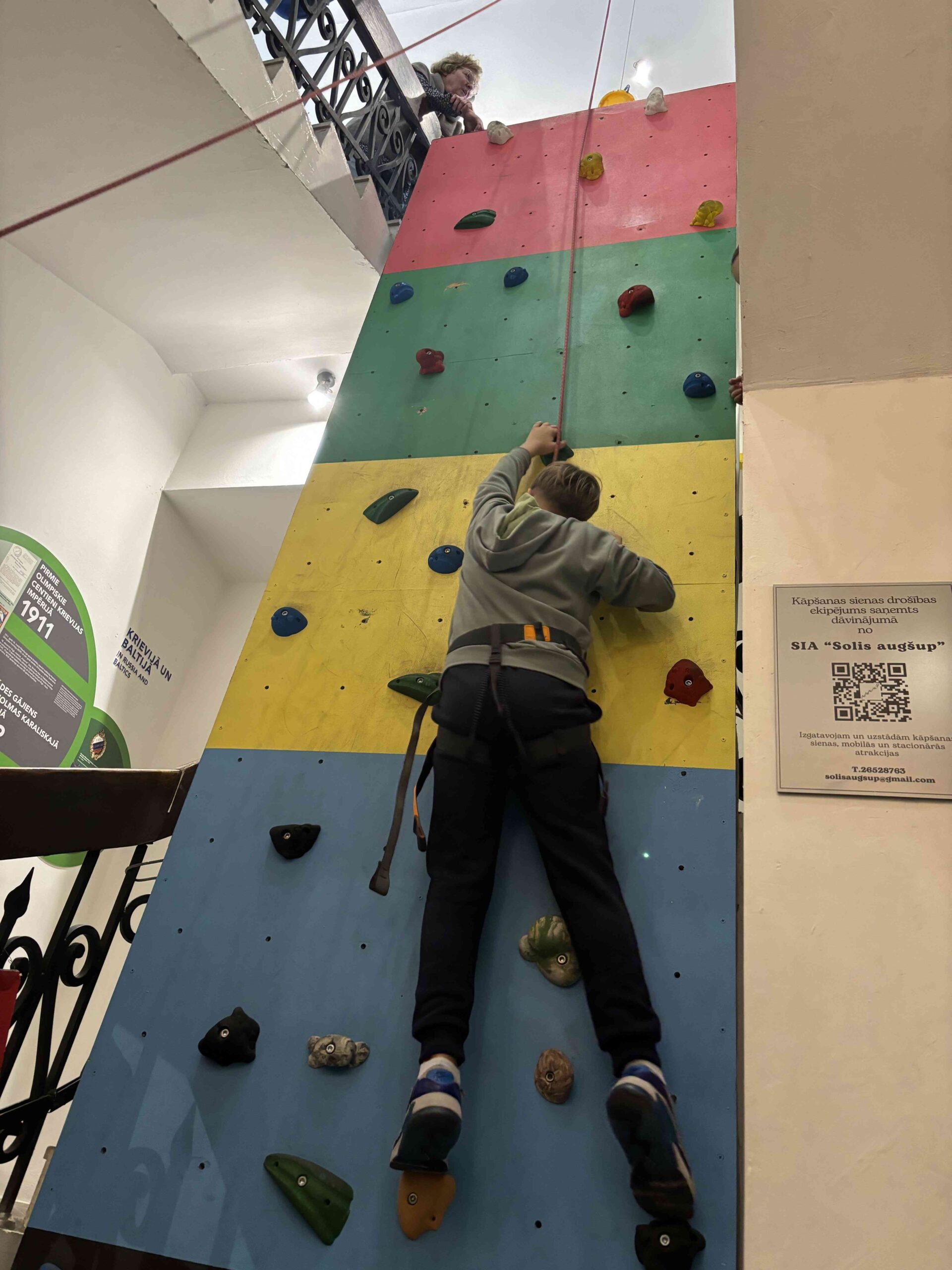 Apmeklējuma sākumā muzeja darbiniece pastāstīja par daudziem slaveniem valsts sportistiem, parādīja interesantas fotogrāfijas ar sportistu panākumiem. Pēc informatīvās daļas visus skolēnus gaidīja lieliska un sportiska izklaide uz mākslīgās klinšu kāpšanas sienas, ko mūsu bērni ar aizrautību izmantoja.
