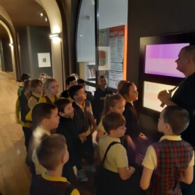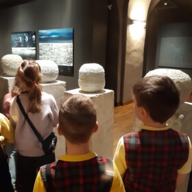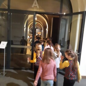 Apmeklējuma laikā skolēniem tika piedāvāta izzinoša pastaiga muzeja izstāžu sektorā, kurā varēja aplūkot dažādus mākslas darbus. Atraktīvais gids iepazīstināja skolēnus ar mākslas virzieniem, veidoja ar bērniem aktīvu dialogu, mudinot tos domāt un izteikt savu viedokli un pieredzi, tādā veidā uzturot ar bērnu auditoriju ciešu kontaktu. No šī dialoga varēja secināt, ka mūsu bērni māk domāt, ātri mācās un ir gatavi uztvert mākslu. Skolēniem bija arī uzdevums – izstāžu zālē katram izvēlēties gleznu, kas piesaistīja lielāku uzmanību. Uz lapiņas vajadzēja uzrakstīt gleznas autoru un tās nosaukumu.