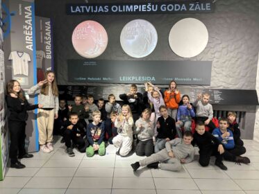 Apmeklējuma sākumā muzeja darbiniece pastāstīja par daudziem slaveniem valsts sportistiem, parādīja interesantas fotogrāfijas ar sportistu panākumiem. Pēc informatīvās daļas visus skolēnus gaidīja lieliska un sportiska izklaide uz mākslīgās klinšu kāpšanas sienas, ko mūsu bērni ar aizrautību izmantoja.