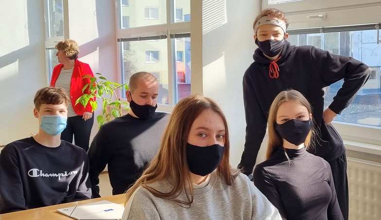 9.klašu skolēni, projekta brauciena dalībnieki: Valērija Jeručonoka, Valērija Zuboviča, Ēriks Tračums, Daniels Balodis, Ruslans Aroniško